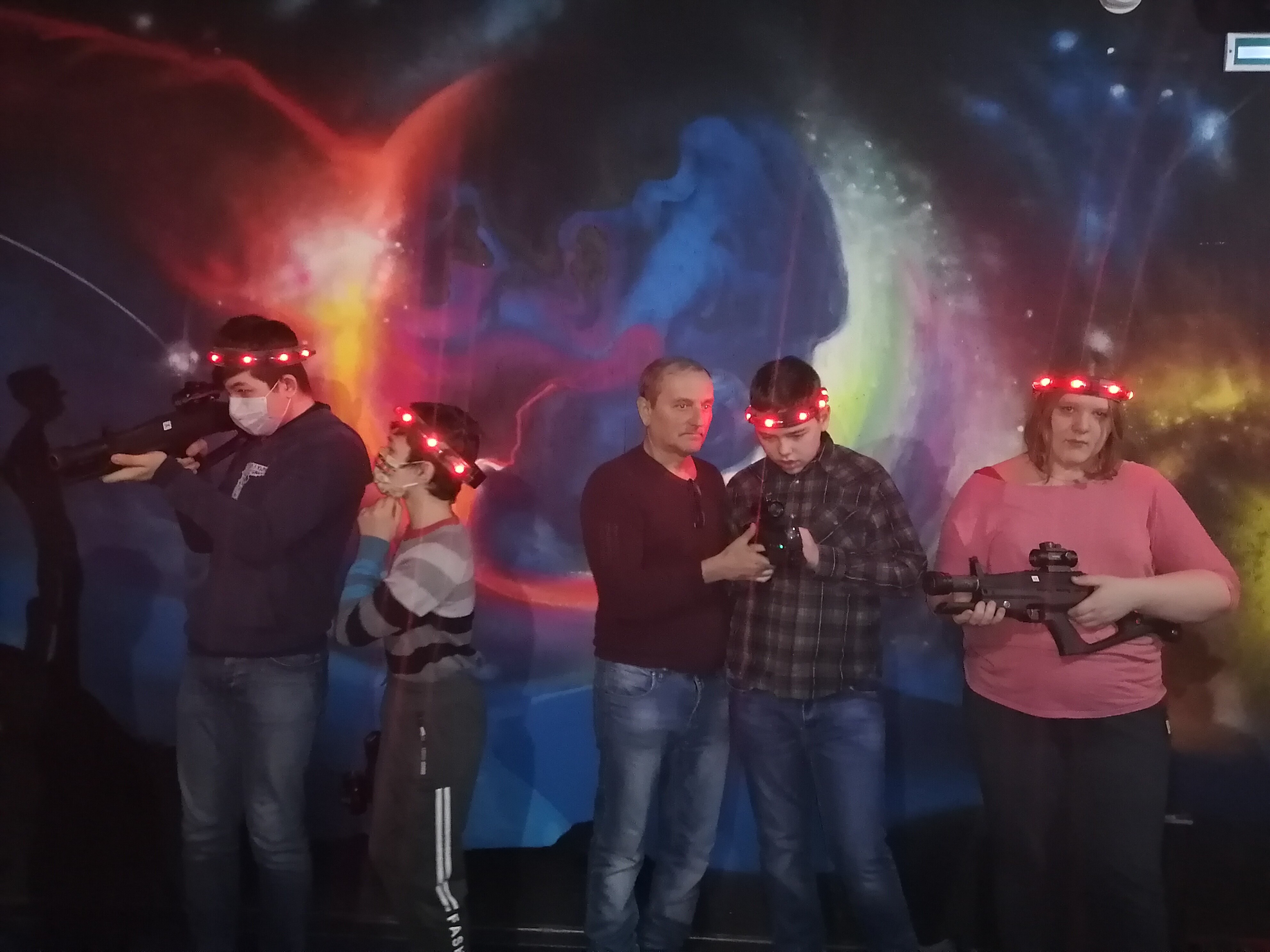 Дети посетили лазертаг - это активная игра, в которой немалую долю так же занимает именно стратегия. Лазертаг это аналог страйкбола или же пейнтбола, отличие заключается лишь в том, что само «оружие» не заряжено никакими сторонними предметами, в момент нажатия на курок из него вместо приносящих физическую боль патронов выходит невидимый ИК луч, попадание в противника считывается датчиками, встроенными в повязку, которая так же по правилам игры одевается на всех участников у которых есть игровое оружие! Перед началом игры все дети были разделены на команды, которым инструктор разъяснил правила, чтобы игра проходила интересно и безопасно. Дети получили массу положительных впечатлений.