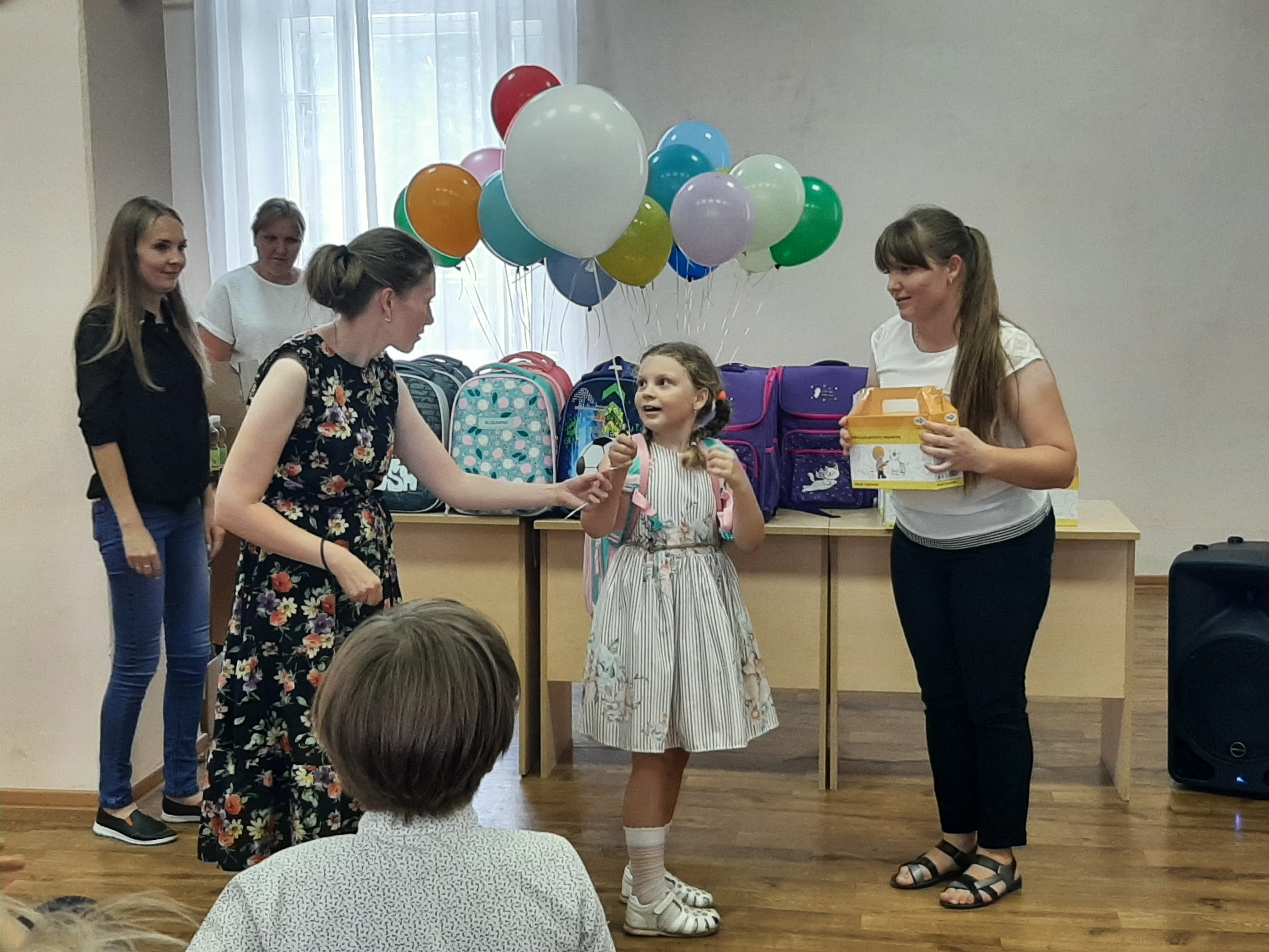 В завершении мероприятия будущим школьникам вручили ранцы со школьными принадлежностями, наборы для творчества, мороженое, лимонад, шары, предоставленные спонсорами.