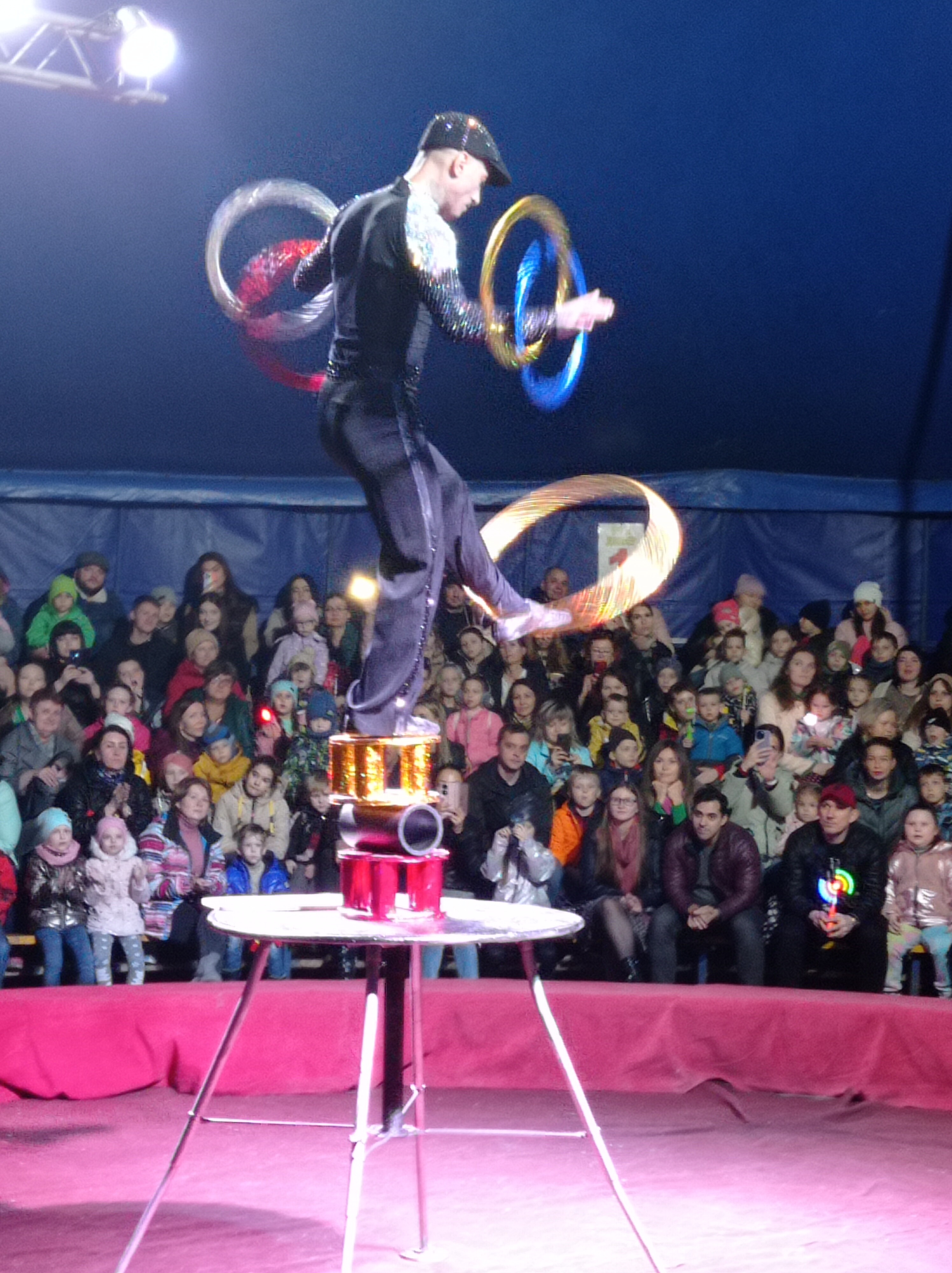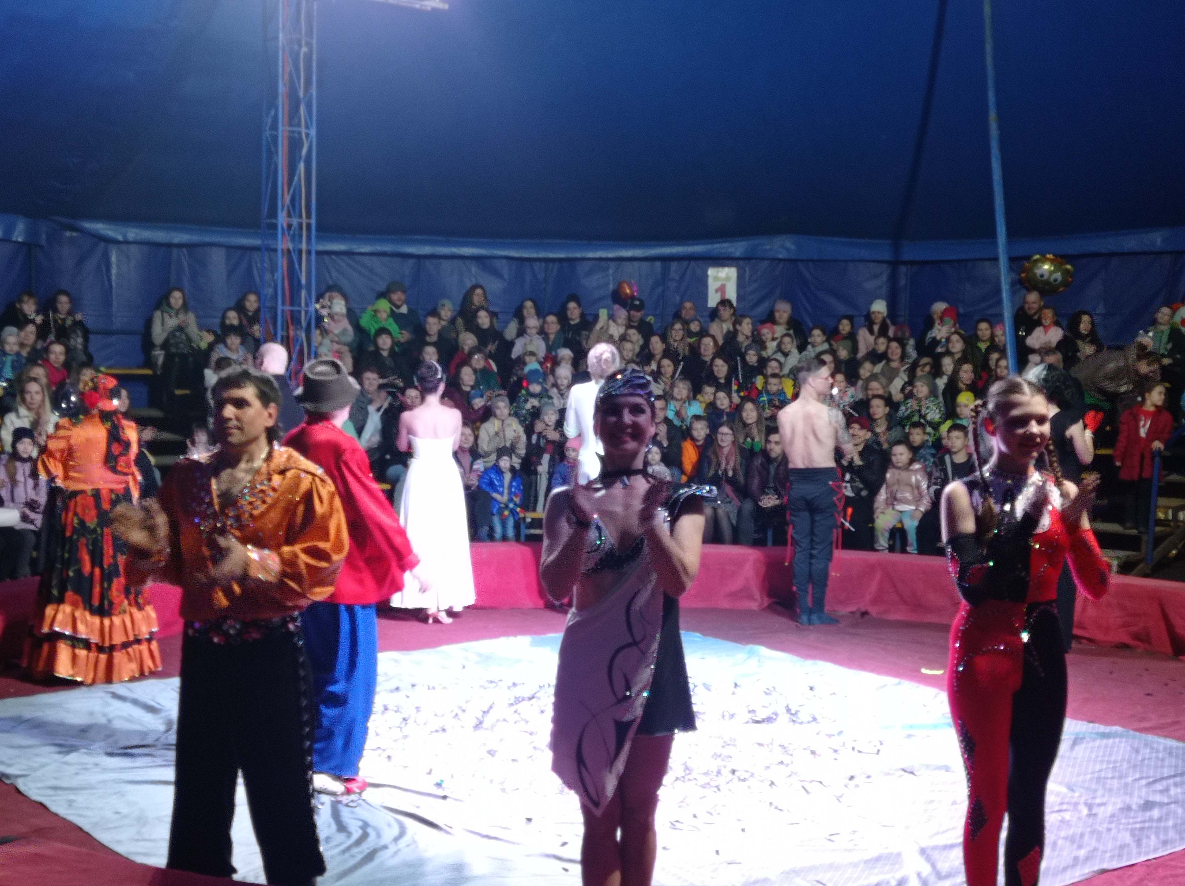 На суд зрителей были представлены номера: «Хулахупы» с огнем в воздухе, эквилибристы на першах, глотание шпаги, акробатический дуэт с кольцом Бернадского.