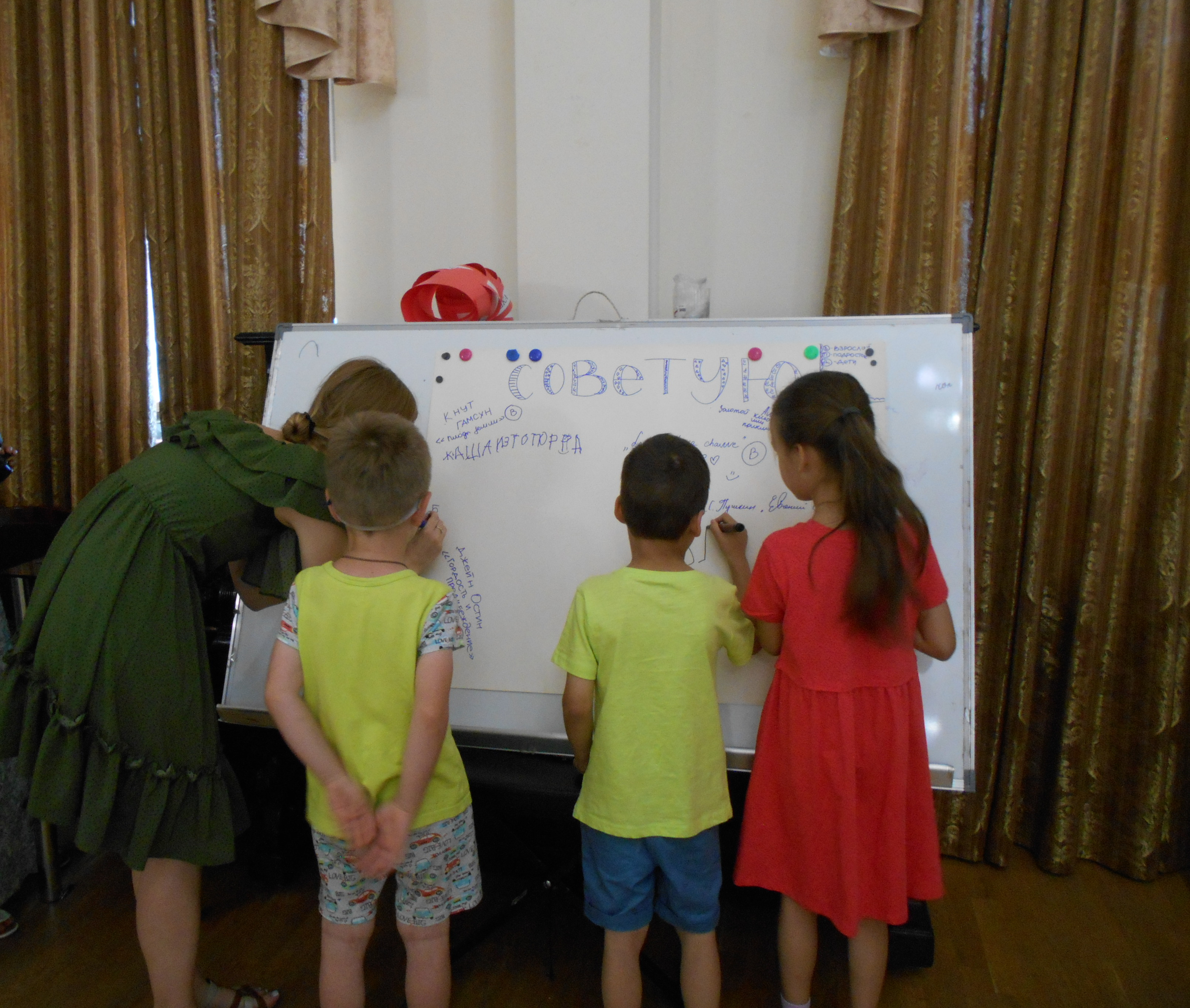 У каждого человека есть любимая книга и, если его спросить, он с удовольствием о ней расскажет. Так каждый из собравшихся в этот день в Литературном музее поделился впечатлениями о своих любимых произведениях и авторах как в устной форме, так и на большом плакате с названием «Советую». Также в рамках встречи дети и родители приняли участие в интерактивной игре «ПРОчтение» и проверили свои знания в области русской классики.