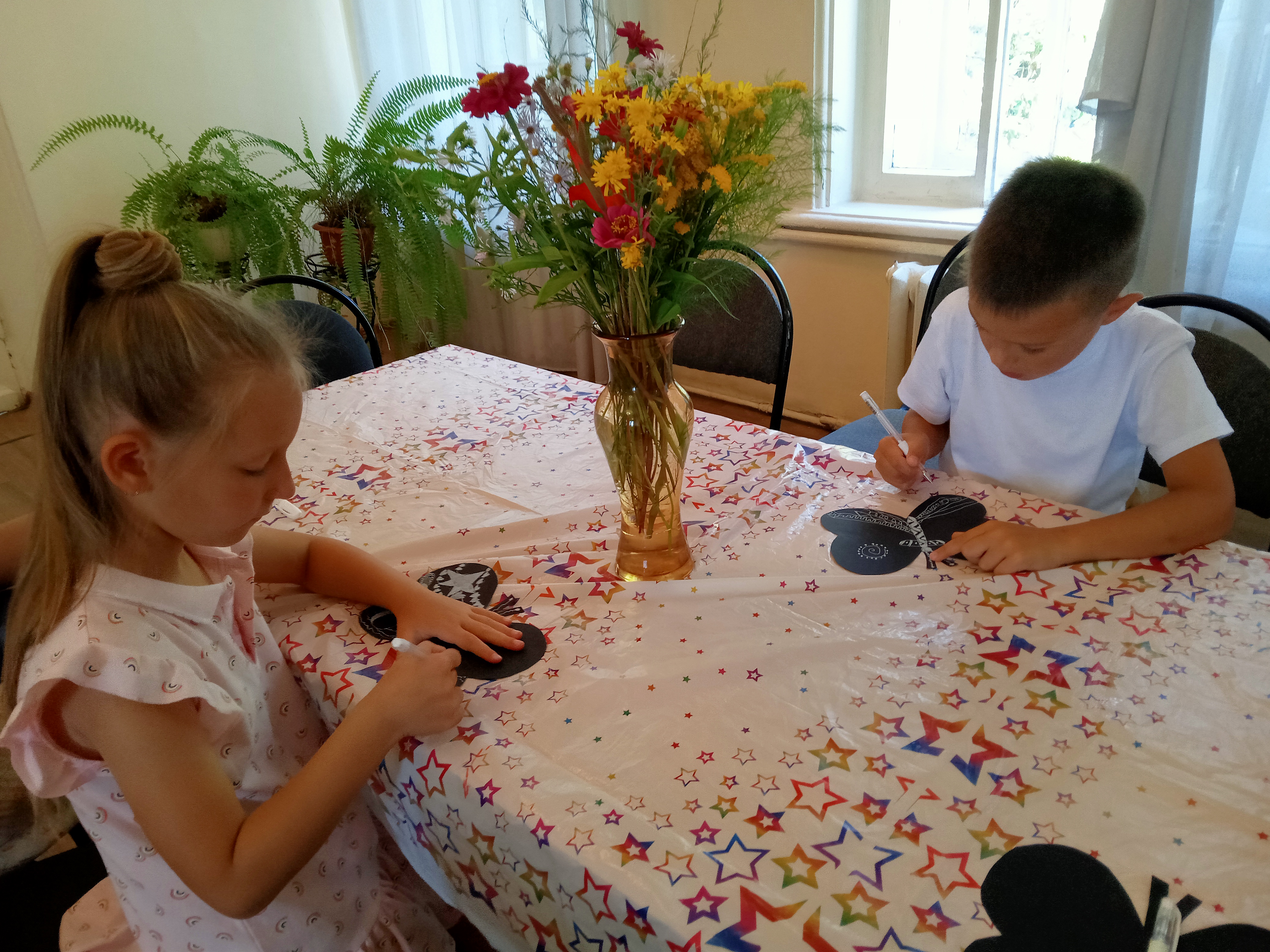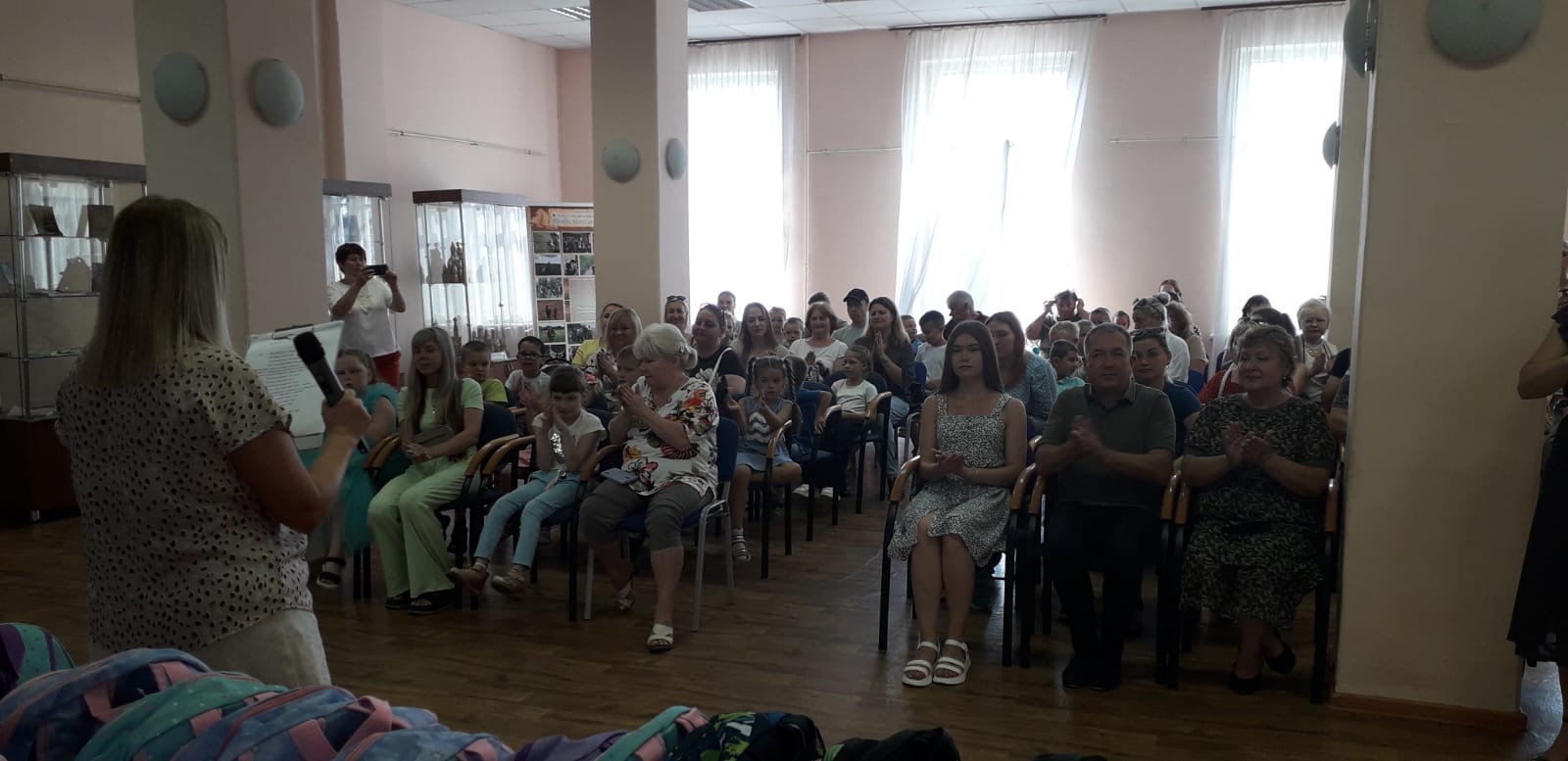 С наступающим Днем Знаний детей поздравил образцовый детский коллектив, студия эстрадного вокала «Лель». В исполнении будущих первоклассников все услышали первые стихи о школе. Дети приняли активное участие в веселых конкурсах, викторинах, играх, которые провели аниматоры Динозаврики. Сотрудниками библиотеки имени М.Ю. Лермонтова был организован и проведен мастер-класс «Волшебная бабочка». Приглашенные рисовали по шаблону бабочки из черной бумаги белой ручкой замысловатые узоры.