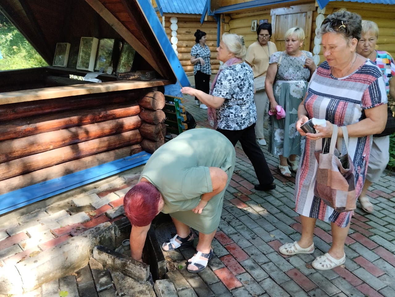 После трапезы для приглашенных провели обзорную экскурсию по территории обители. Рассказали об истории образования данного монастыря, который был основан в середине XIX века, где по преданию была явлена на святом источнике чудотворная икона святой великомученицы Параскевы Пятницы. Затем все приглашенные посетили 3 родника-Параскевы Пятницы с купелью, Николая Чудотворца, Серафима Саровского (минеральный источник). Все набрали целебной воды и совершили купание в святом источнике, которое считается целебным и чудотворящим действом.