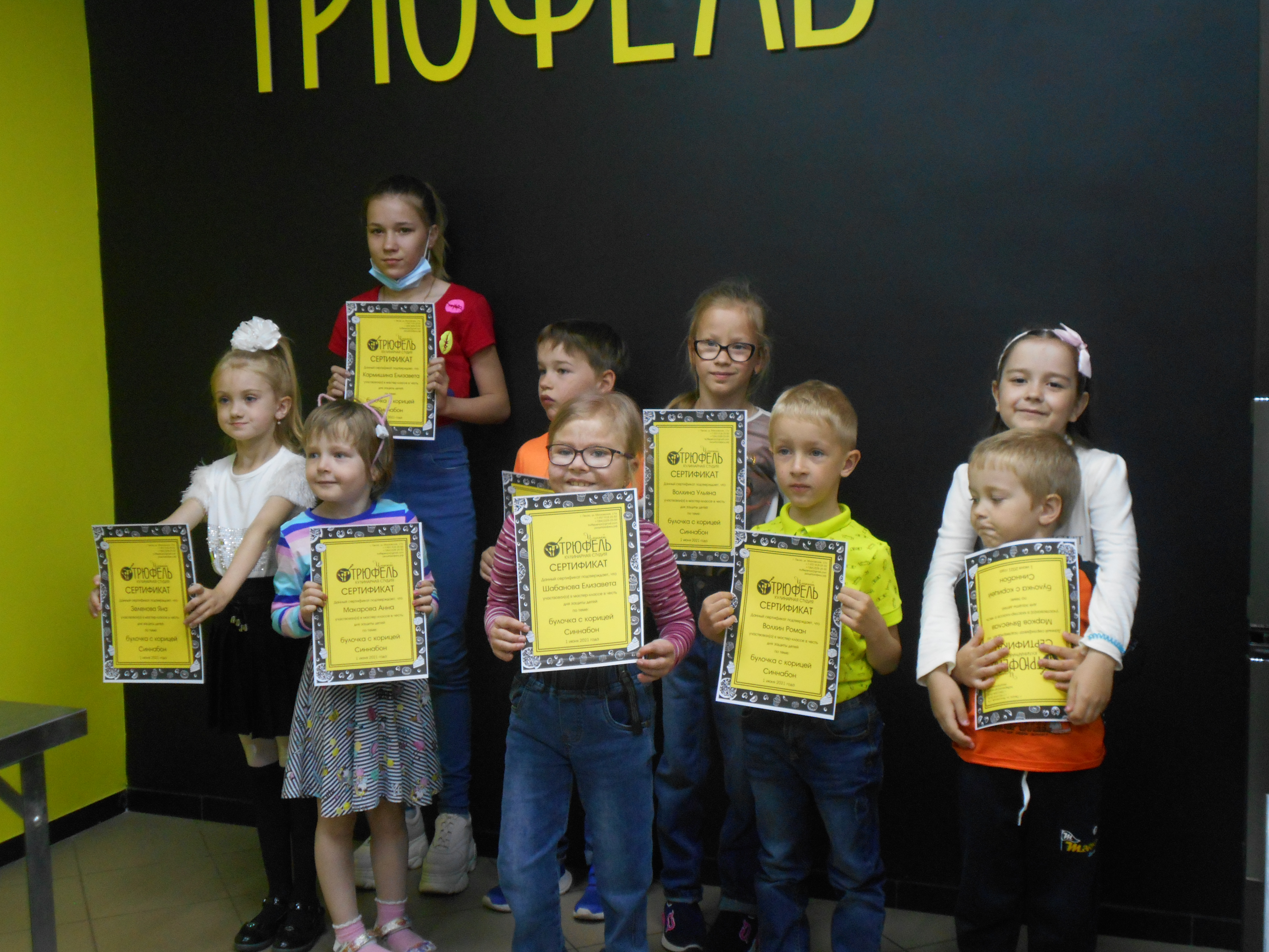 Кулинарная студия проводит мастер-классы для детей и взрослых, разрабатывает рецептуры кондитерских изделий. Из предложенных ингредиентов дети под руководством преподавателя изготавливали и украшали булочки синабон. После мастер-класса каждый участник получил рецепт и именной сертификат об участии. Также всем собравшимся детям вручили сладкие сувениры.